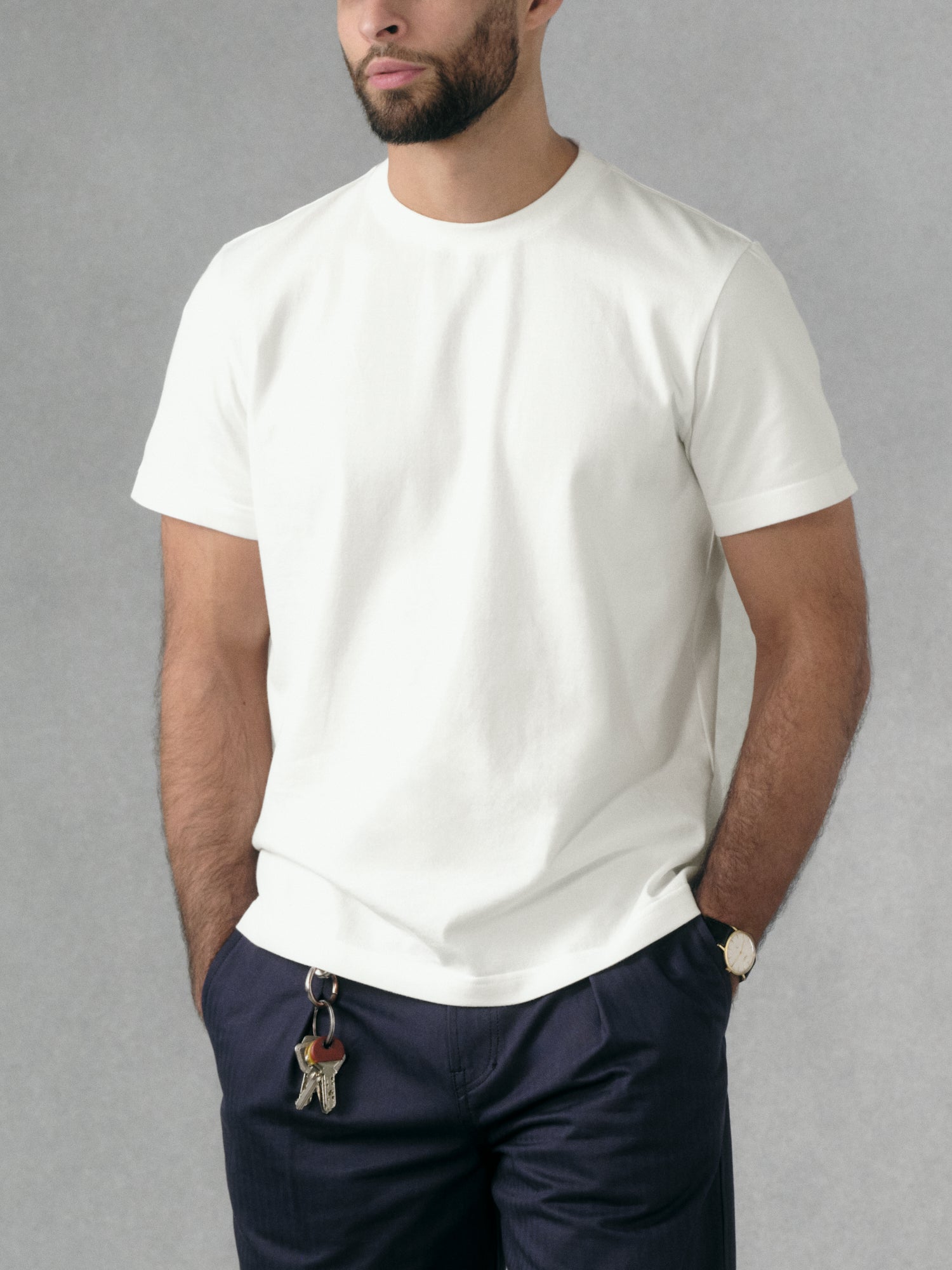A balanced, everyday tee cut from a high-density jersey. Subtle shoulder shaping, clean hems, designed for fit and longevity.